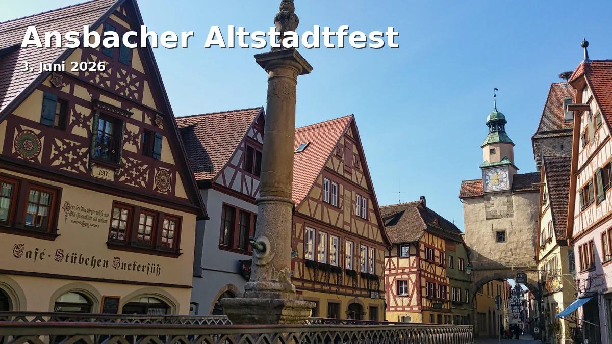 From June 3rd to 7th, 2026, the historic old town of Ansbach will transform into a vibrant event space. The Old Town Festival offers a varied mix of live music, street art, and culinary highlights that attract visitors from near and far. Enjoy the unique atmosphere of the historic alleys and courtyards, which will become a feast for the senses during these days.