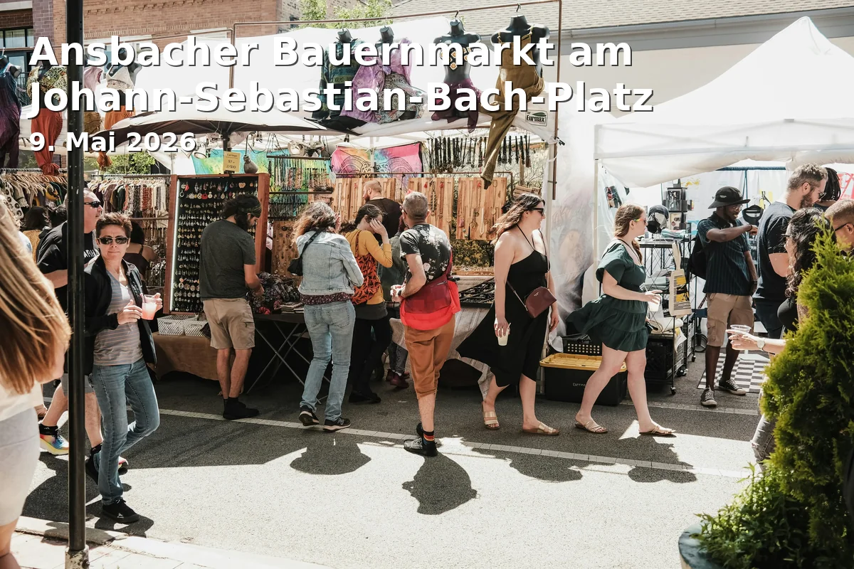The popular Ansbach Farmers' Market will take place on May 9, 2026, at Johann Sebastian Bach Square. Visit this special market, which will exceptionally be offered on a Friday instead of the first Saturday of the month. From 7:00 AM to 1:00 PM, visitors will have the opportunity to discover and purchase a variety of regional products directly from the producers.