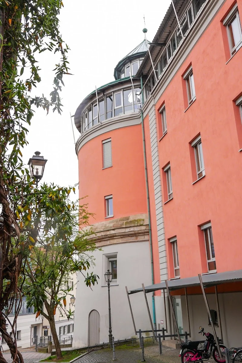 A particularly striking detail is the so-called Thick Tower, which, according to tourism information, is part of the former city fortifications. It is also explained that the tower encompasses a detention cell and that the glass upper floor was built in 1995 as an extension of the gymnasium. This combination of medieval city layout, historical substance, and modern extension makes the location vivid and distinguishes the Carolinum from many other school buildings. Instead of an arbitrary peripheral location, there is a school site embedded in the history of the old town. This is interesting for visitors as well as for parents who want to get an impression of the school. At the same time, this historical environment fits very well with the school's educational orientation: The Carolinum sees itself as a place where cultural education, language, music, and tradition naturally belong together. That the school sees its origin in a Latin school from the 16th century while simultaneously maintaining modern offerings such as digital learning forms, exchange programs, and all-day care shows the special dynamism of this institution. Thus, history is not only preserved here but also vibrantly developed further. ([tourismus-ansbach.de](https://www.tourismus-ansbach.de/detail/id%3D64f9bab71bebef2ffcb2fea7))